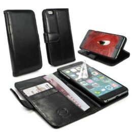 Suojaa Apple iPhone 6 Plus puhelin premium-luokan mustalla nahkaisella lompakkokotelolla.