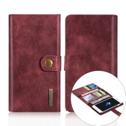 Suojaa Apple iPhone 7 / 8 Plus puhelin kolhuilta aidosta nahasta valmistetulla punaisella DG.MING 2-in-1 yhdistelmäkotelolla.