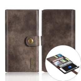 Apple iPhone 7 Plus ja Apple iPhone 8 Plus puhelimiin sopivassa tummanruskeassa DG.MING kotelossa on peräti 15 korttipaikkaa ja kaksi taskua.