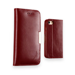 Suojaa Apple iPhone 7 / 8 / SE (2020) älypuhelin erittäin laadukkaalla punaisella KLD Royale II nahkakotelolla.