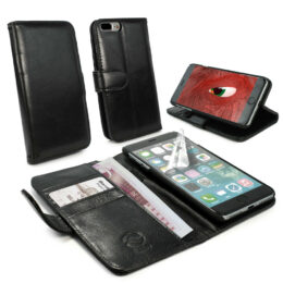 Tilaa musta nahkainen lompakkokotelo ja suojaat Apple iPhone 7 / 8 Plus puhelimen iskuilta, naarmuilta ja putoamisilta.