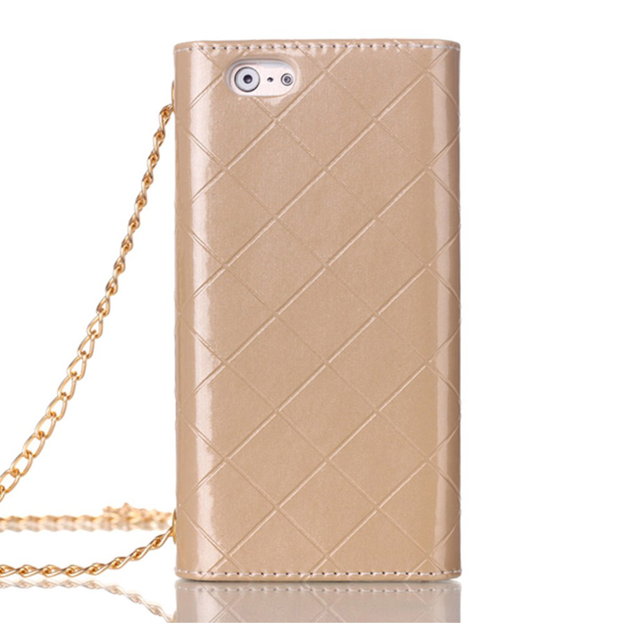Suojaa Apple iPhone 7 / 8 älypuhelin tyylikkäällä kultaisella käsilaukku suojakotelolla.