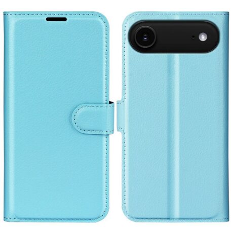 Käytännöllinen, lompakkomallinen kotelo vaaleasävyisen sinisillä kansilla suojaa pätevästi Apple iPhone Air -älypuhelimen osumilta.