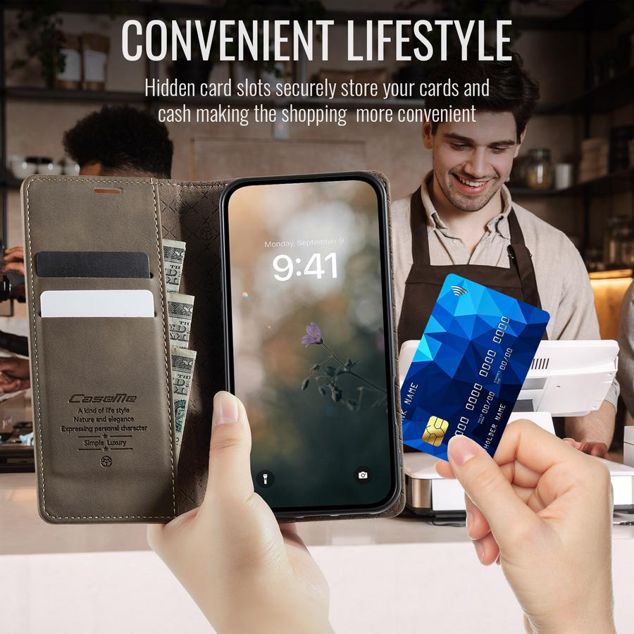 Kauttaaltaan puhelimen pinnat peittävän kotelon kansissa on magneettinen suljenta.