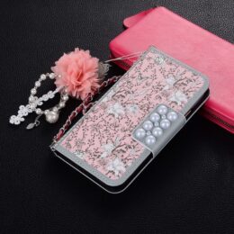 Suojaa Apple iPhone X / Xs älypuhelin tyylillä liljakuvioisella suojakotelo ja käsilaukku yhdistelmällä, jossa on kolme korttipaikkaa.