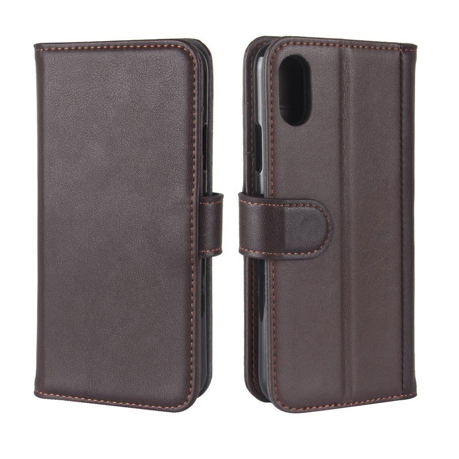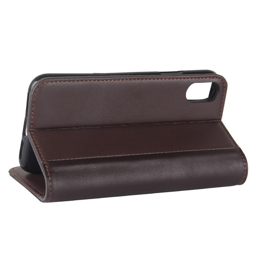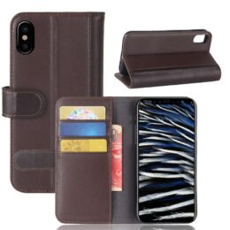Suojaa Apple iPhone X / Xs älypuhelin tyylillä ja säilytä kortit ja kuitit ruskealla aidosta nahasta valmistetulla lompakkokotelolla.