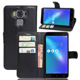 Tilaa musta lompakko mallinen suojakotelo suojaamaan Asus Zenfone 3 Max 5.5″ älypuhelinta iskuilta, kolhuilta ja putoamisilta.