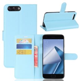 Sinisessä lompakkokotelossa säilytät kortit ja kuitit ja sillä suojaat Asus Zenfone 4 5.5″ ZE554KL puhelimen kolhuilta ja iskuilta.