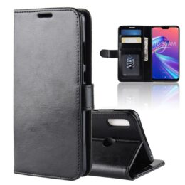 Mustassa Asus Zenfone Max Pro M2 ZB631KL puhelimeen sopivassa suojakotelossa on kolme korttipaikkaa, leveä tasku, jalusta-toiminto ja magneettisuljenta.