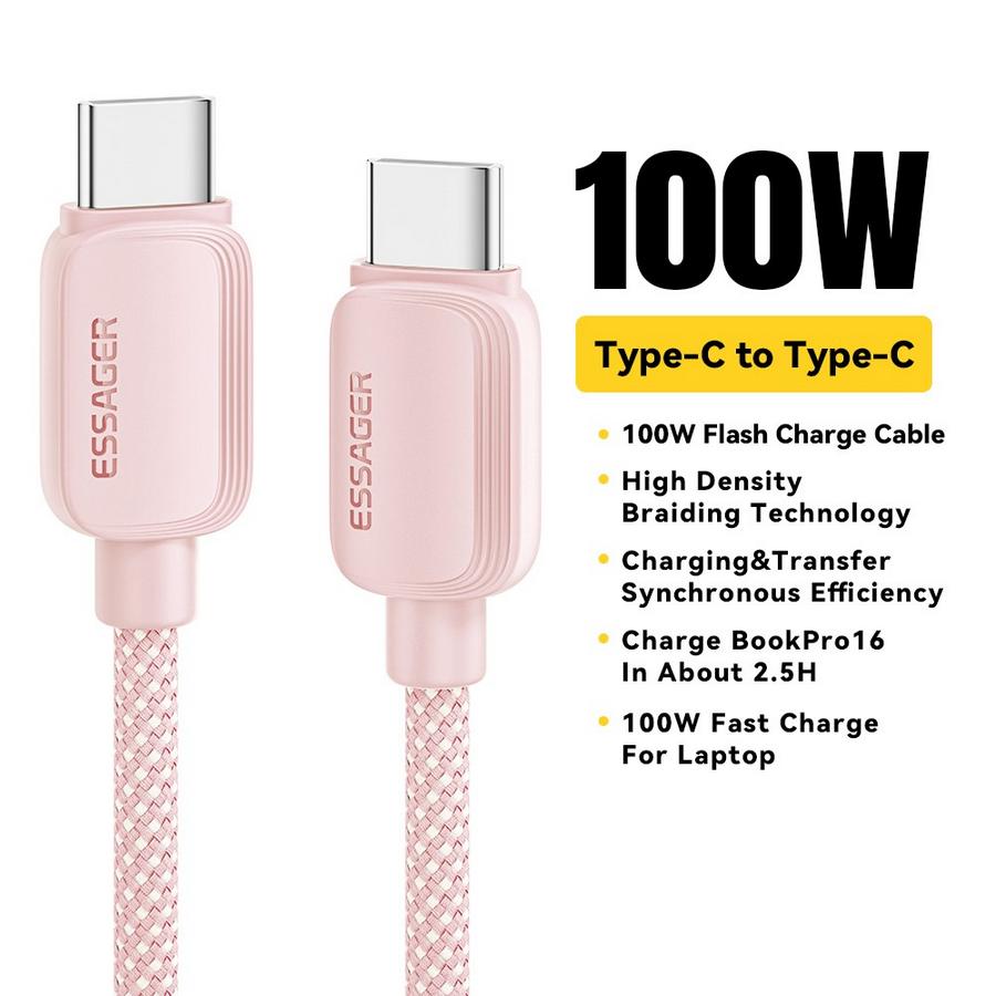 ESSAGER USB-C – USB-C Pikalatauskaapeli 100W 2m Vaaleanpunainen