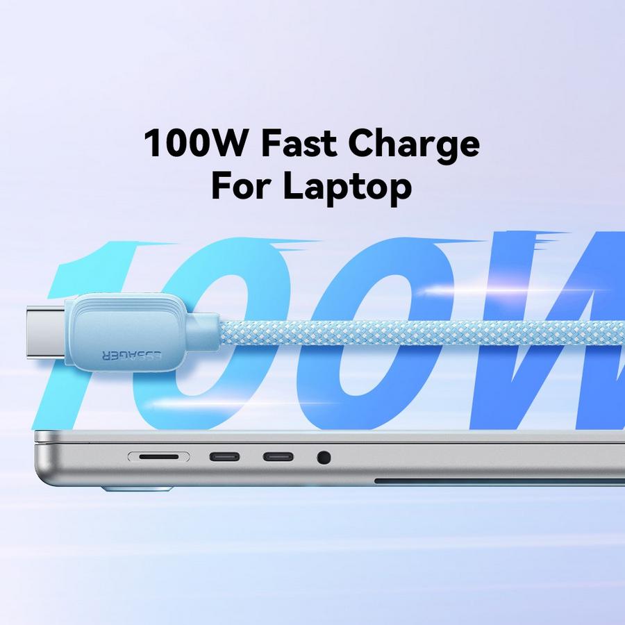 ESSAGER USB-C – USB-C Pikalatauskaapeli 100W 2m Vaaleansininen