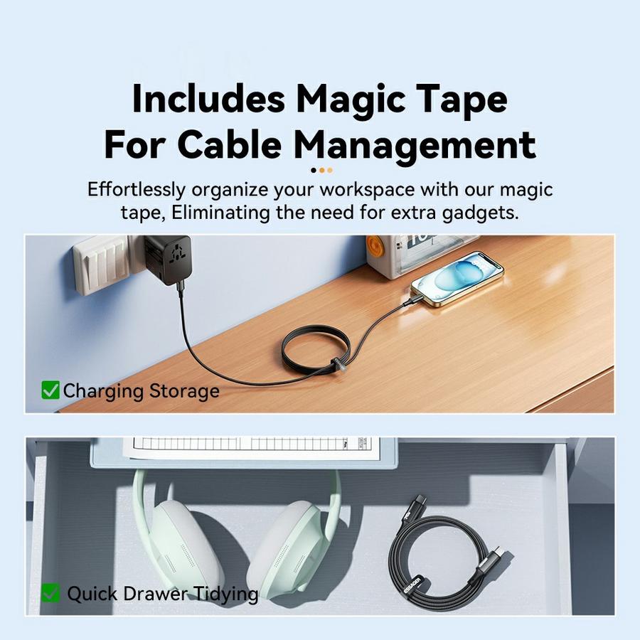 Kaapelissa on Micro USB, USB-C ja Apple Lightning päät, jolloin lataat kätevästi kaikki laitteet samalla kaapelille.