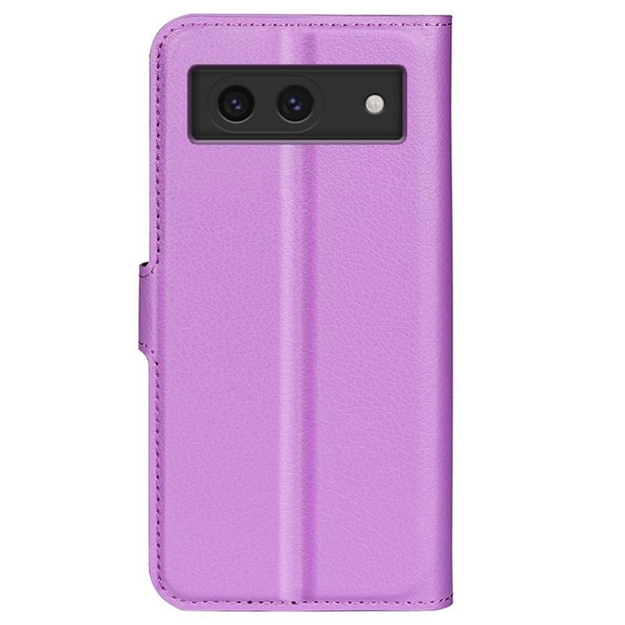 Violetin värinen, kaunis ja käytännöllinen lompakkokotelo Google Pixel 8a puhelinta varten, antamaan suojan osumilta ja naarmuuntumiselta.