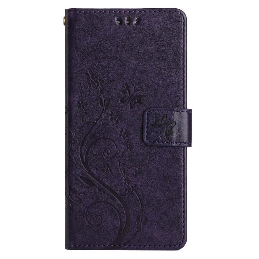 Tummaan violettiin puetun kotelon kauniina yksityiskohtina perhosia ja kukkia, vaurioitumisen suoja Google Pixel 9 / Pixel 9 Pro puhelimille.