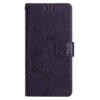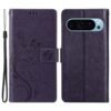 Tummaan violettiin puetun kotelon kauniina yksityiskohtina perhosia ja kukkia, vaurioitumisen suoja Google Pixel 9 / Pixel 9 Pro puhelimille.