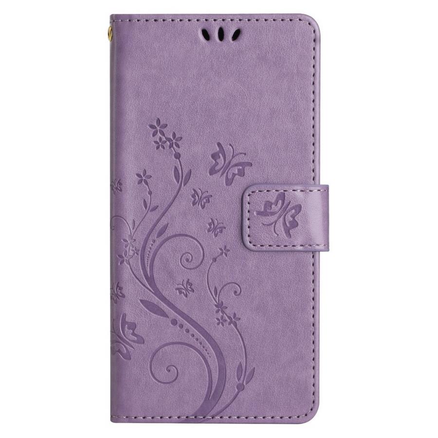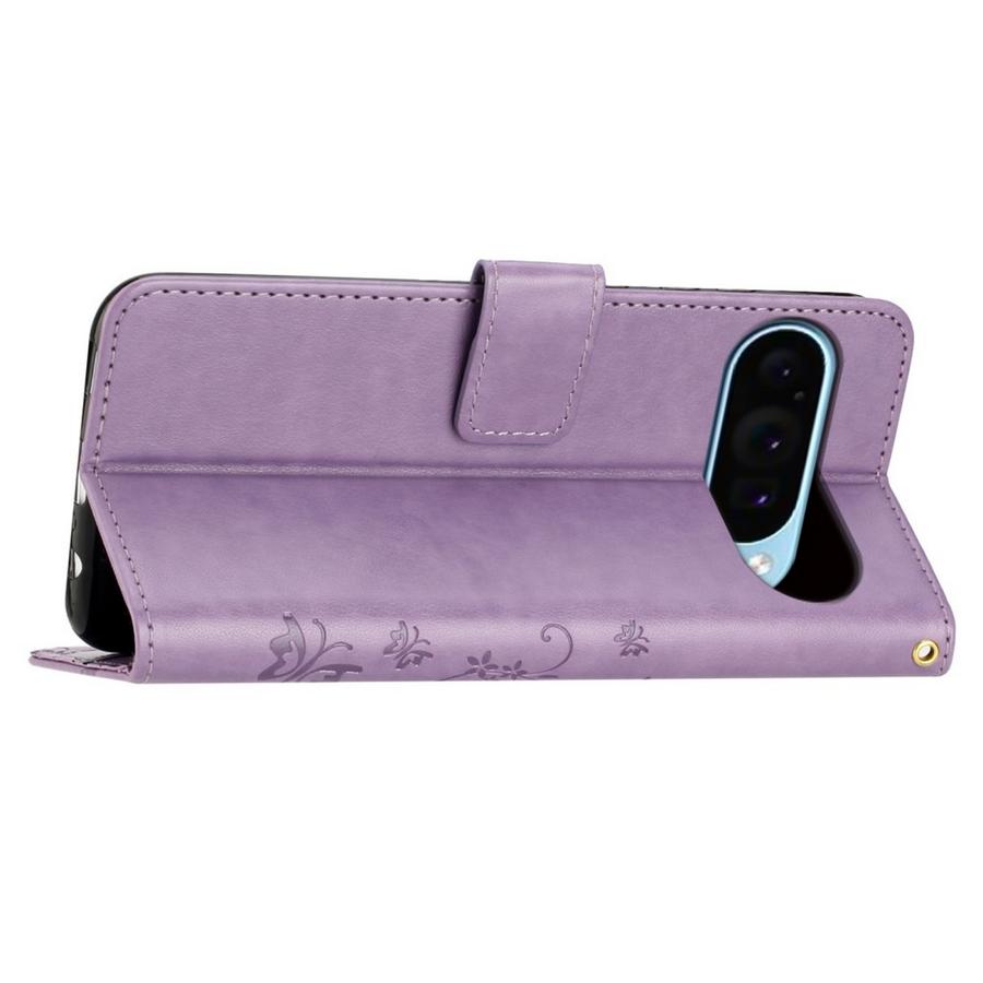 Sievästi kukkaköynnöksellä ja perhosilla kuvioitu vaaleanvioletti kotelo on kattava rikkoutumisen suoja Google Pixel 9 / Pixel 9 Pro puhelimille.