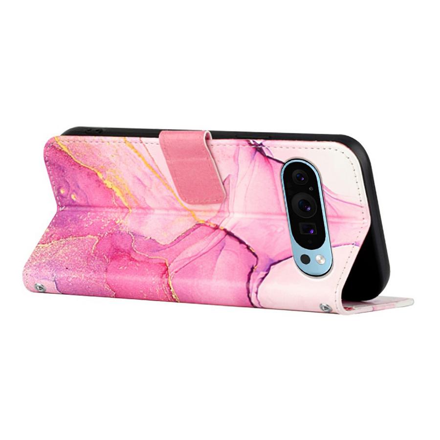 Anna Google Pixel 9 / Pixel 9 Pro -puhelimille viehättävä ilme ja suojaus vahingoilta upealla pinkin sävyisellä marmorikuvioisella kotelolla.