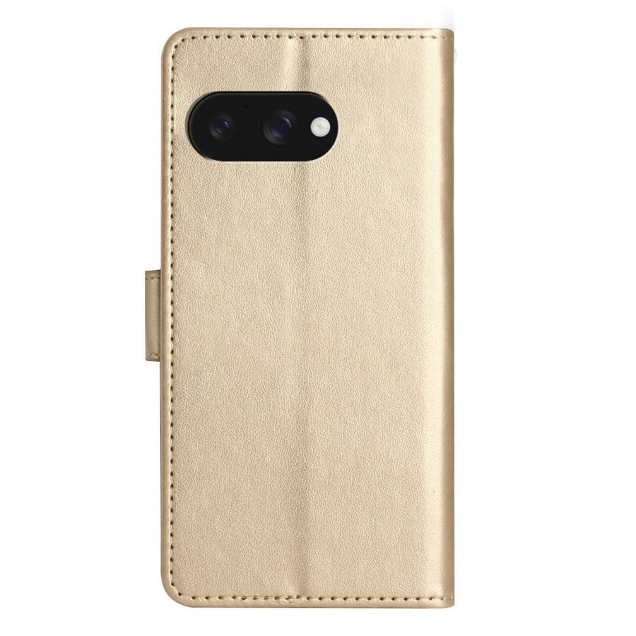 Kultaisissa kansissa hohtava ja ihanin painokuvoin somistettu kotelomalli Google Pixel 9a puhelimen suojaamiseen rikkoutumiselta.