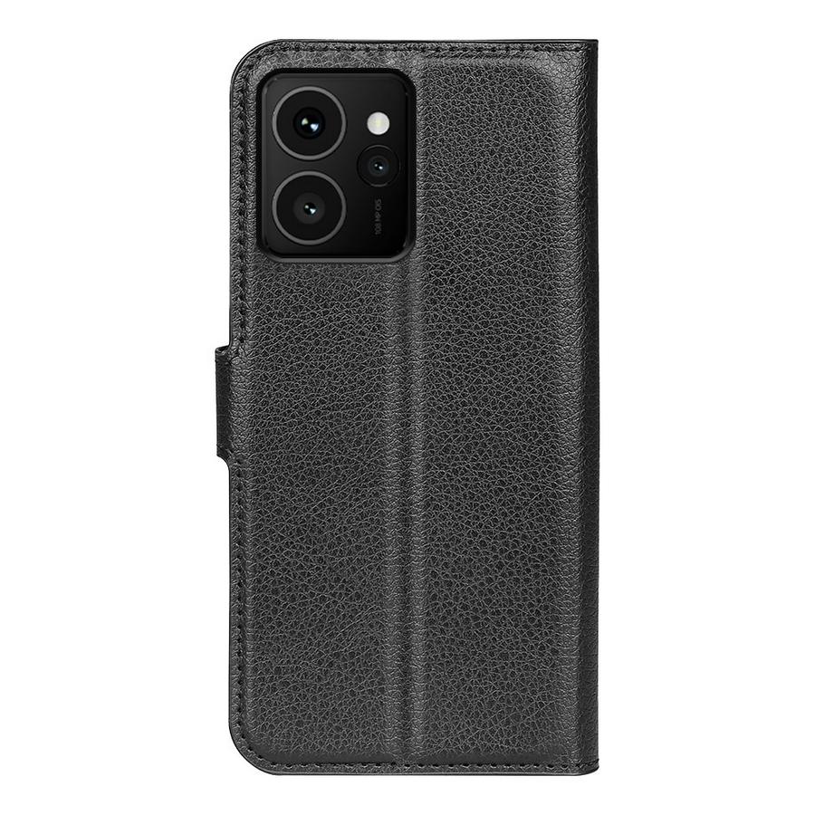 Klassinen mustakantinen lompakkokotelo, jossa HMD Skyline 5G -älypuhelin tehokkaasti suojattuna vahingoilta ja pintojen naarmuilta.