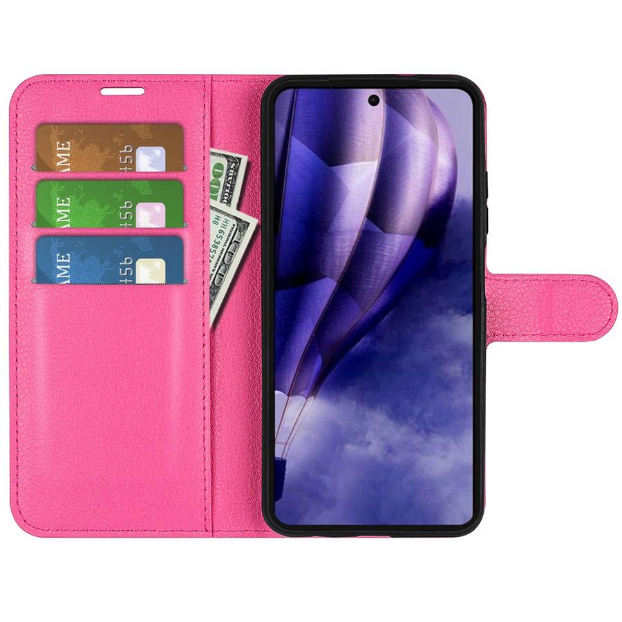 Ihanan pirteä lompakkokotelo HMD Skyline 5G -älypuhelimelle, pinkkiin puettu suoja rikkoutumiselta sekä pintojen naarmuilta.