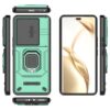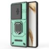 Honor 200 Pro 5G puhelimen vankasti suojaava ja monipuolisesti käytettävä takakuori metallinsävyn vihreällä värityksellä.