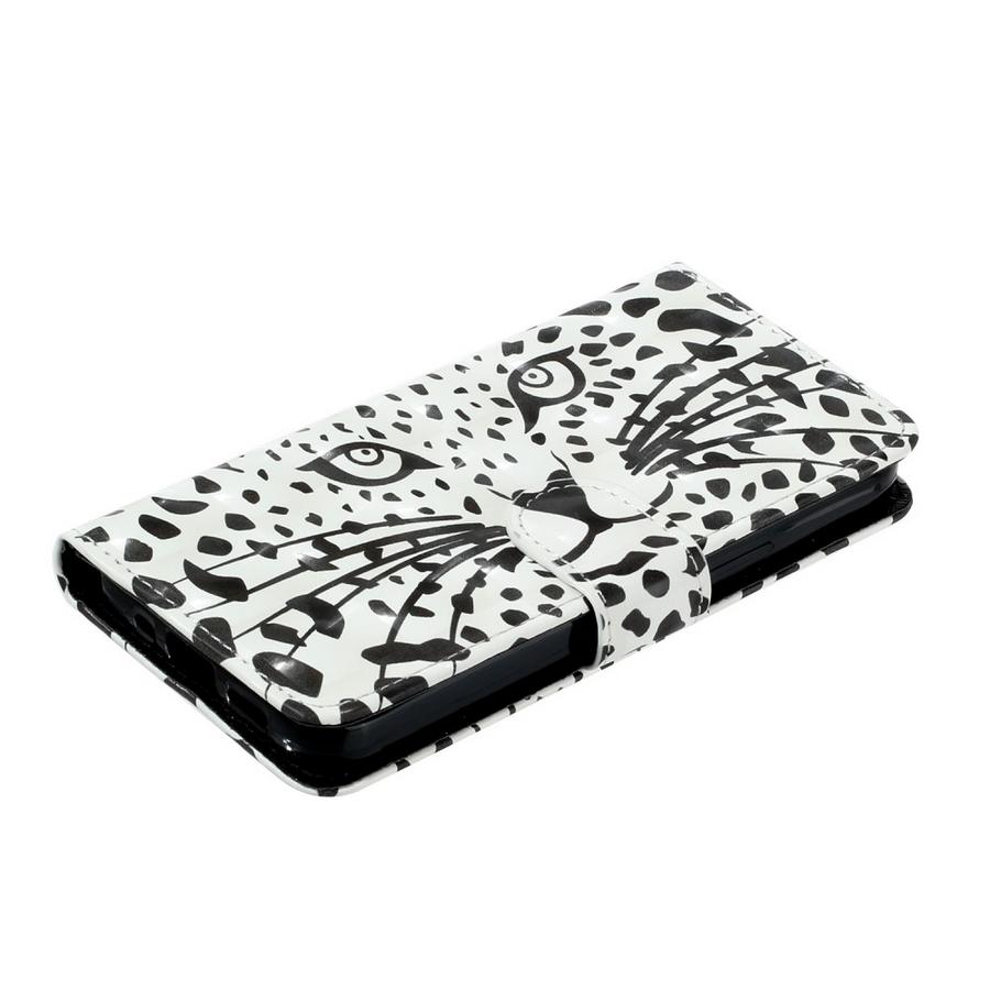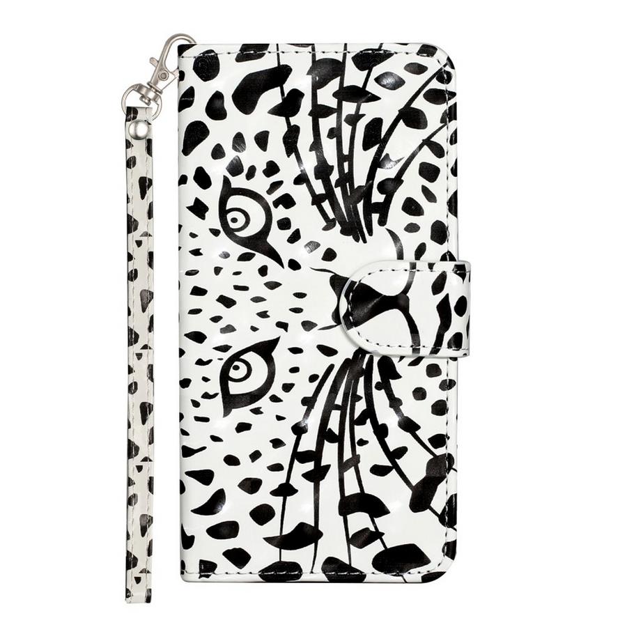 Honor 200 Smart 5G älypuhelimelle rikkoutumiselta suojaava mustavalkoinen lompakkokotelo kissaeläimen kuvioimana.