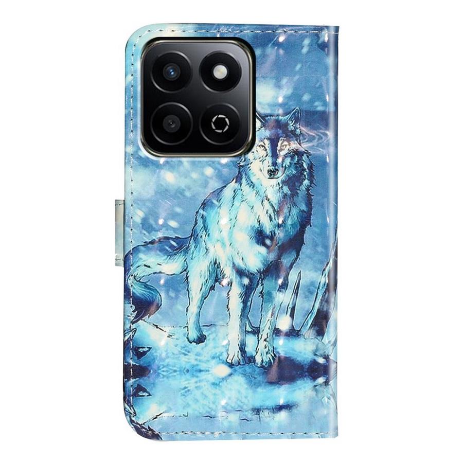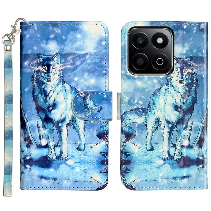 Honor 200 Smart 5G puhelimen turvaamiseksi kotelo, jonka raikkaan sinisissä kansissa on upeasti kuvioituna suden hahmo.