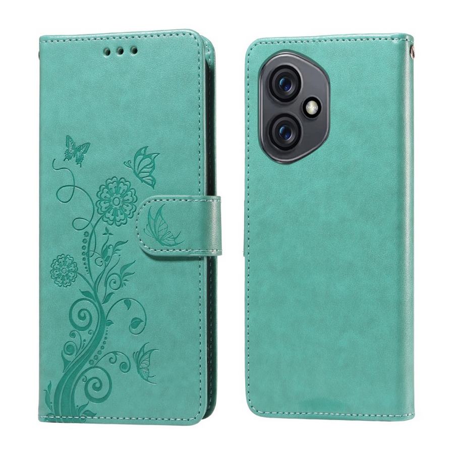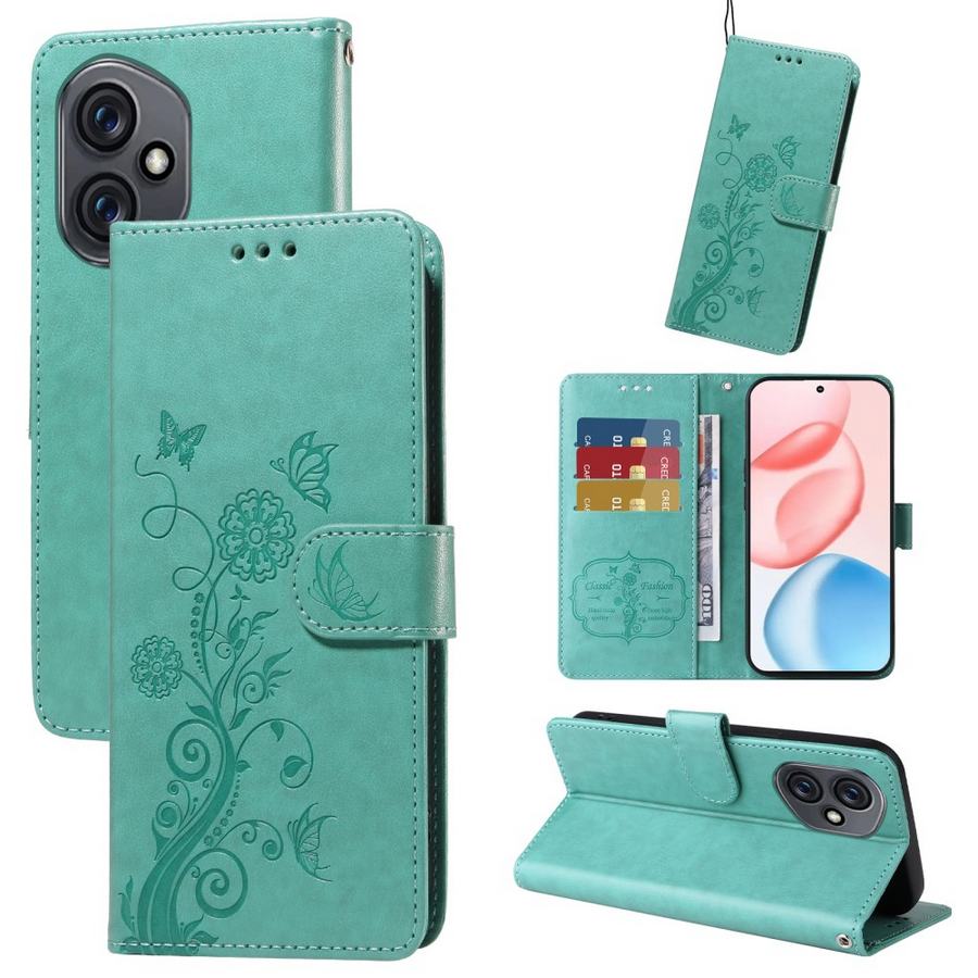 Pirteät turkoosin väriset kannet on kuvioitu suloisilla perhosilla ja kukkaköynnöksellä, suojakotelo Honor 400 5G puhelimen turvaksi.