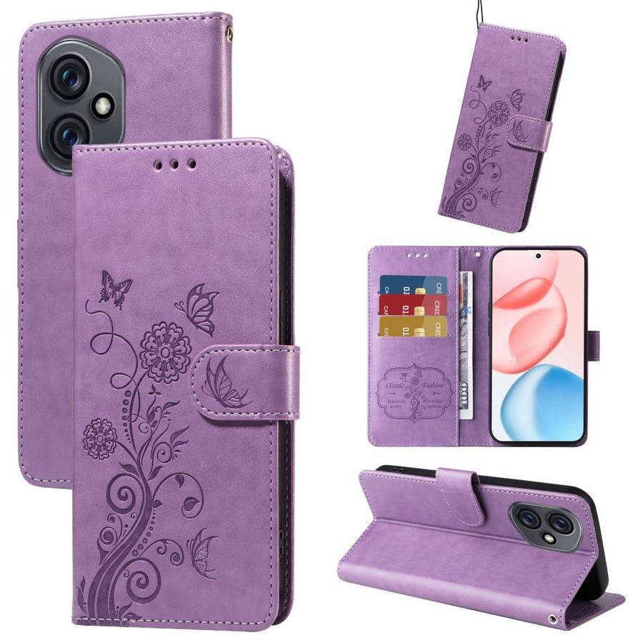 Hempeän vaalea violetin sävy ja ihastuttava perhos- ja köynnöskuviointi, mitä kaunein Honor 400 5G puhelinta suojaava kotelo.