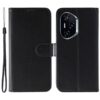 Kiiltäväpintainen, mustakantinen nahkakotelo on erittäin kestävä ja ilmeeltään klassisen tyylikäs suoja Honor 400 5G puhelimelle.