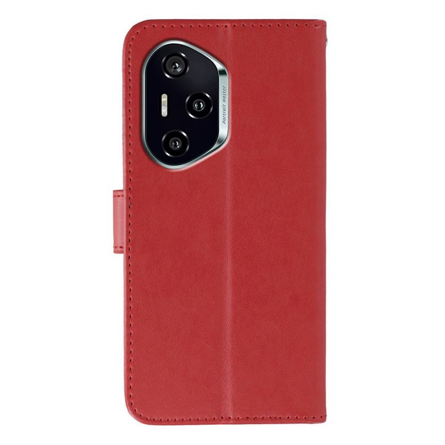 Viehättävän kaunis punaisen värinen lompakkokotelo suojaamaan Honor 400 5G puhelinmallia rikkoutumiselta ja naarmuilta.