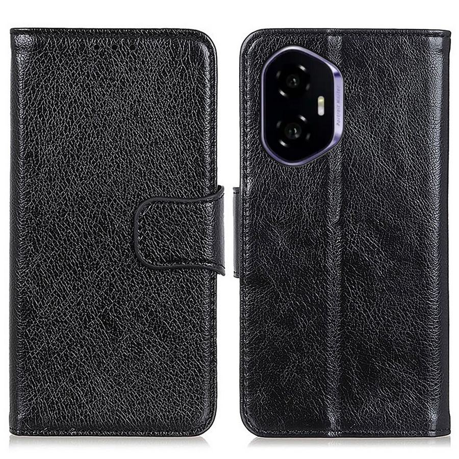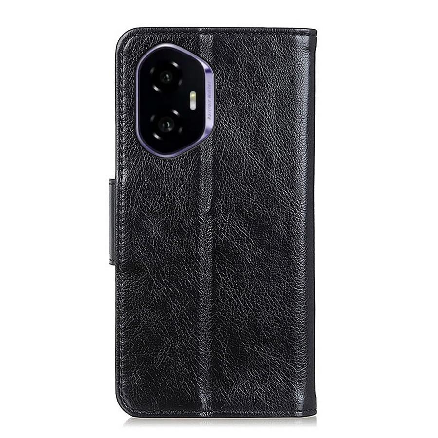 Kiiltäväpintainen, mustakantinen nahkakotelo on erittäin kestävä ja ilmeeltään klassisen tyylikäs suoja Honor 400 5G puhelimelle.