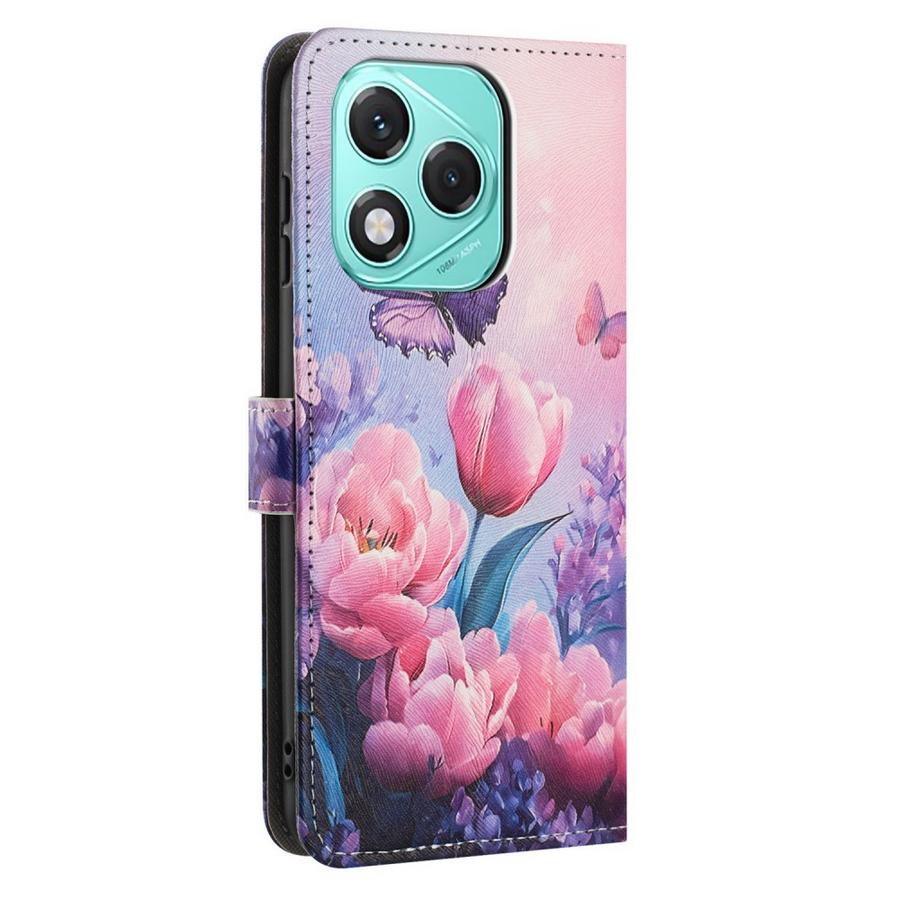 Suloinen tulppaanien ja perhosten kuvioima kotelomalli suojaamaan Honor 400 Lite 5G puhelinta osumilta ja naarmuuntumiselta.