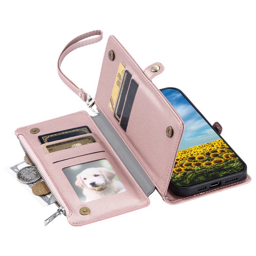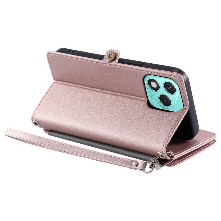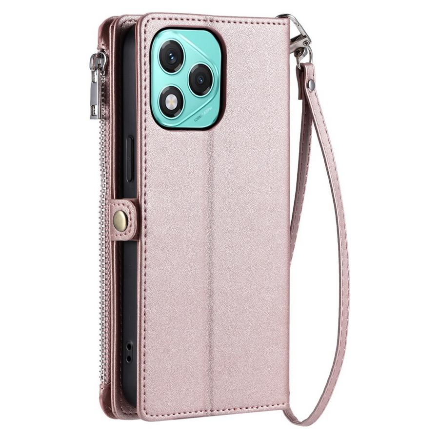 Ihastuttava ruusukullan hohtoinen lompakkokotelo on todella tilava ja sisältää erinomaisen suojan Honor 400 Lite 5G puhelimelle.