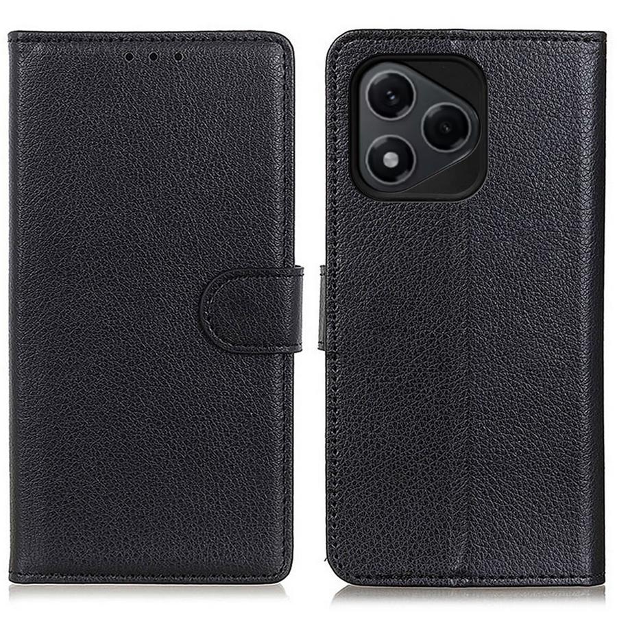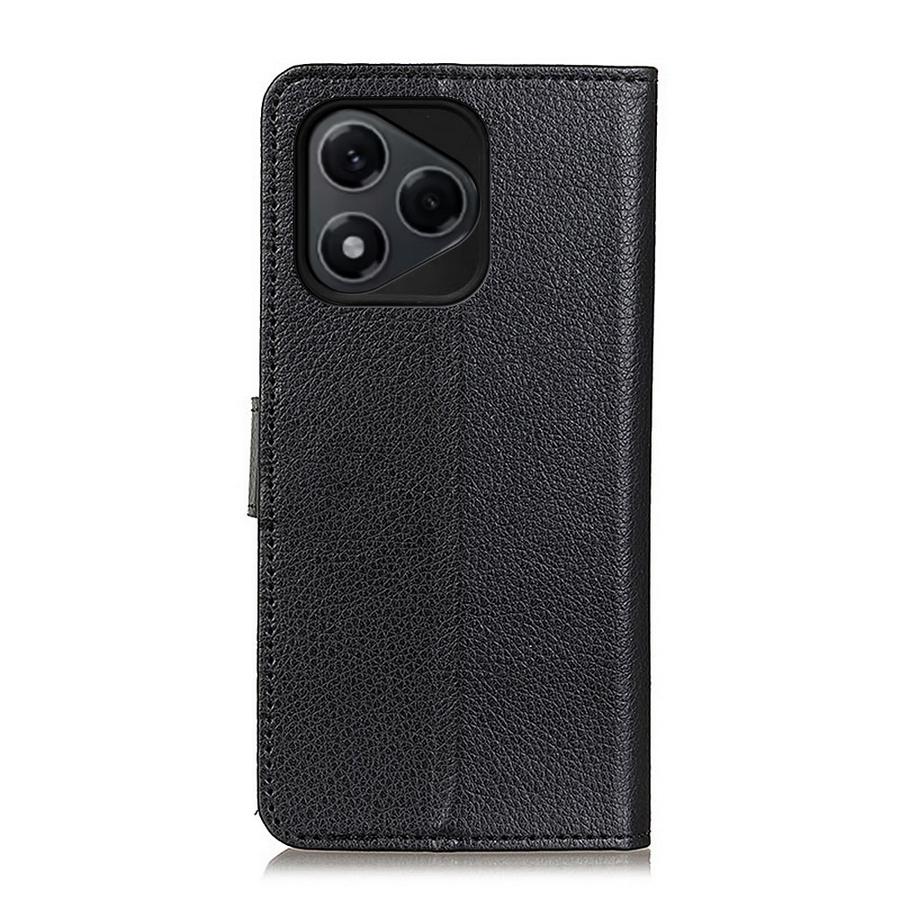 Hyvännäköinen musta lompakkomallinen kotelo Honor 400 Lite 5G puhelimelle, suojaa laitteeseen kohdistuvien osumien aiheuttamilta säröiltä.