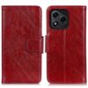 Honor 400 Lite 5G puhelimen erinomaisesti suojaava, elegantti nahkakantinen lompakkokotelo kiiltävän viininpunaisessa värissä.