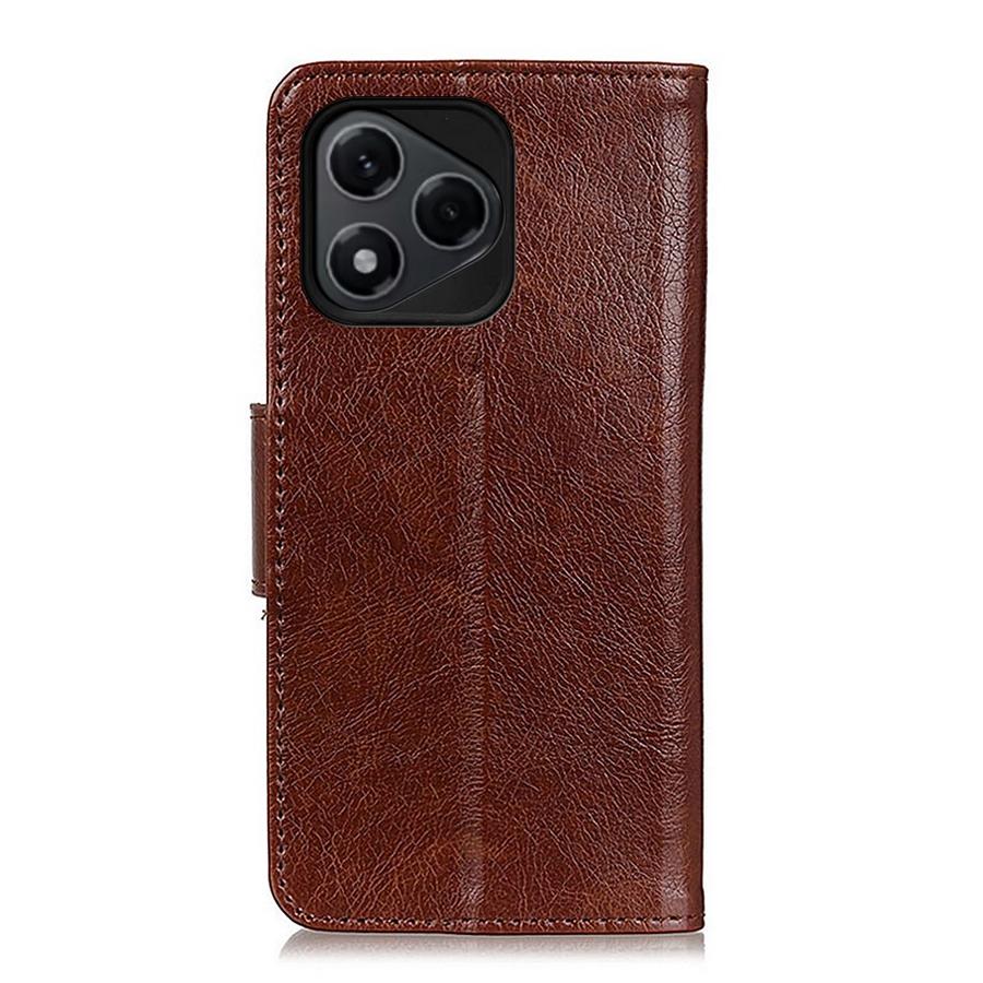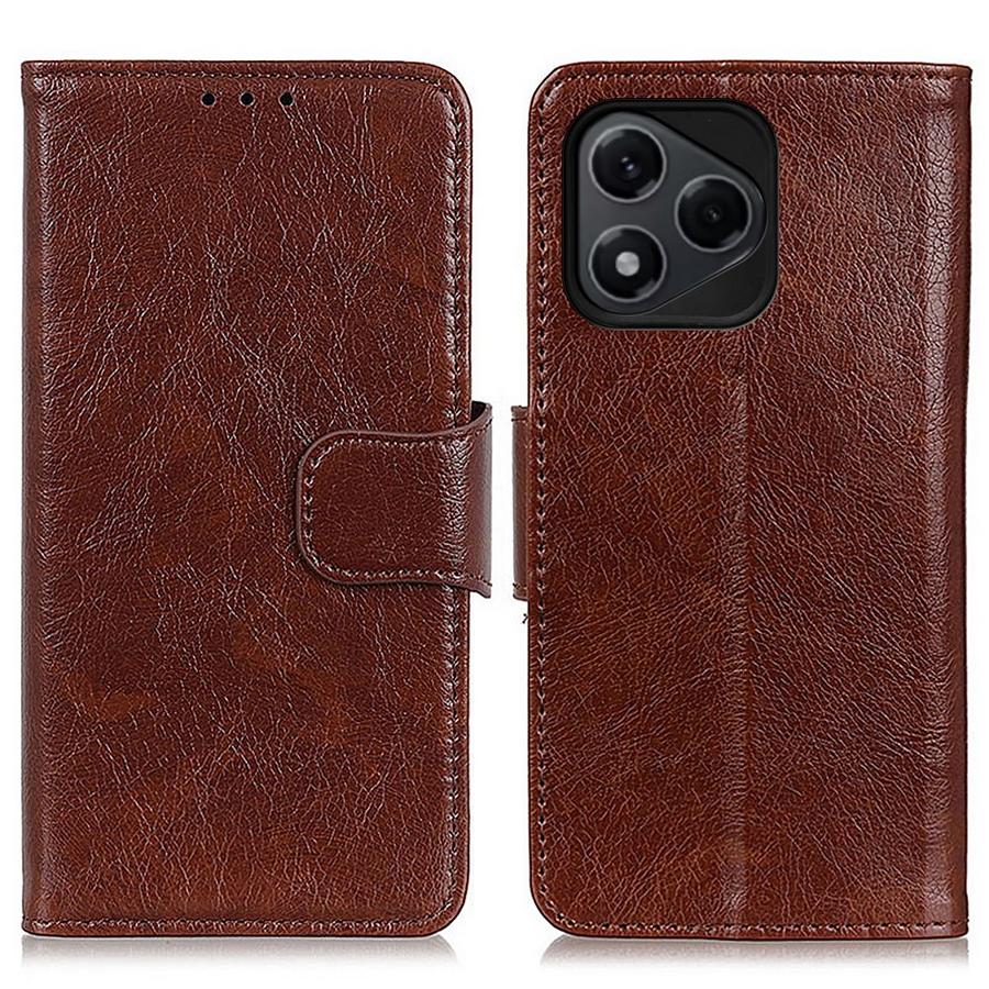 Tyylikäs lompakkokotelo Honor 400 Lite 5G -puhelimelle, valmistettu luonnollisen ruskeasta aidosta nahasta ja tarjoaa tehokkaan suojan.
