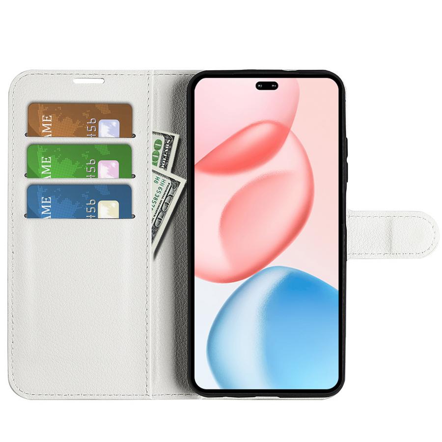 Elegantisti puhtaanvalkoiseen puettu lompakkomallinen kotelo, Honor 400 Pro 5G -puhelimelle kattava suoja arjen vahingoilta ja vaurioilta.