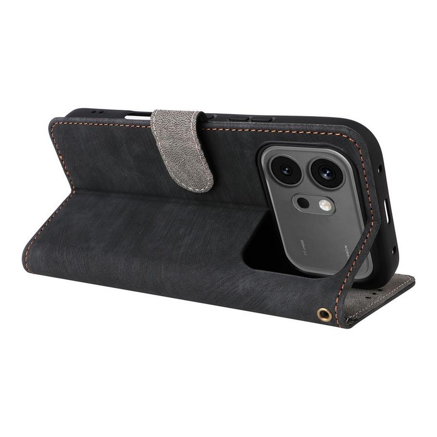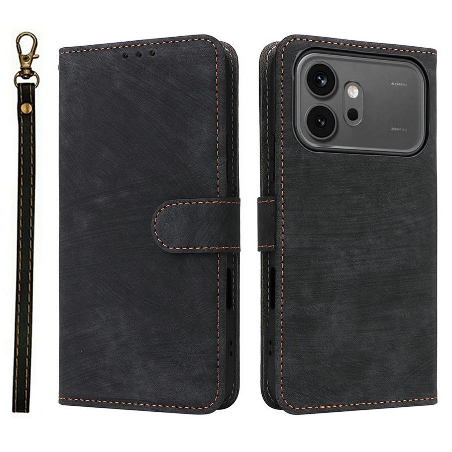 Ajattoman musta lompakkokotelo, jossa Honor 600 5G / 600 Pro 5G -puhelinmallit sekä maksuvälineet pysyvät turvassa arjen käytössä.