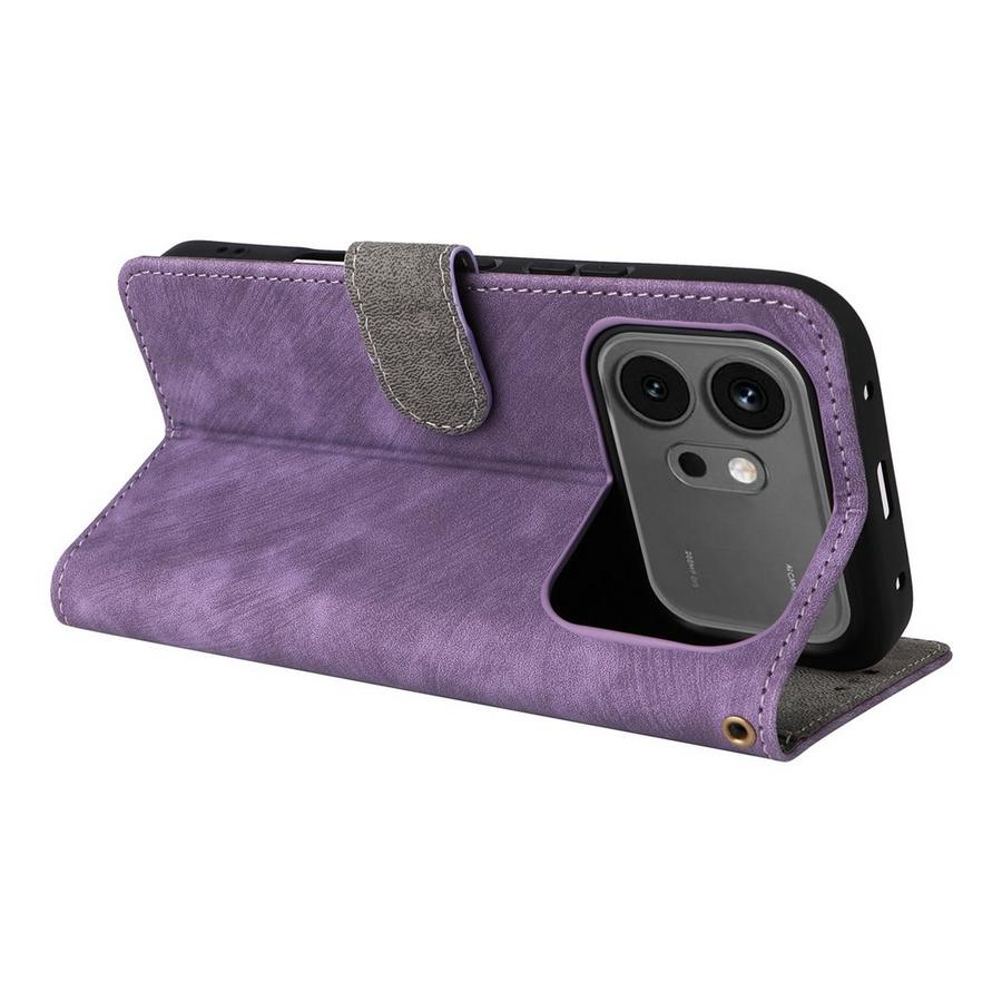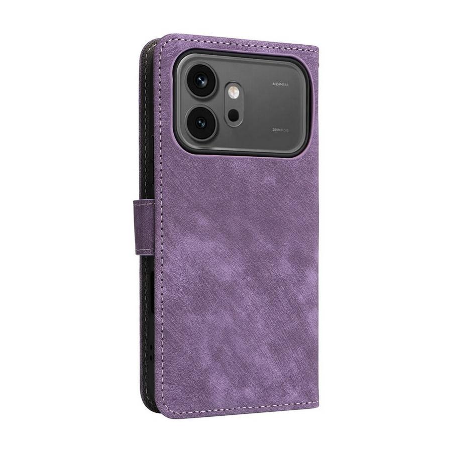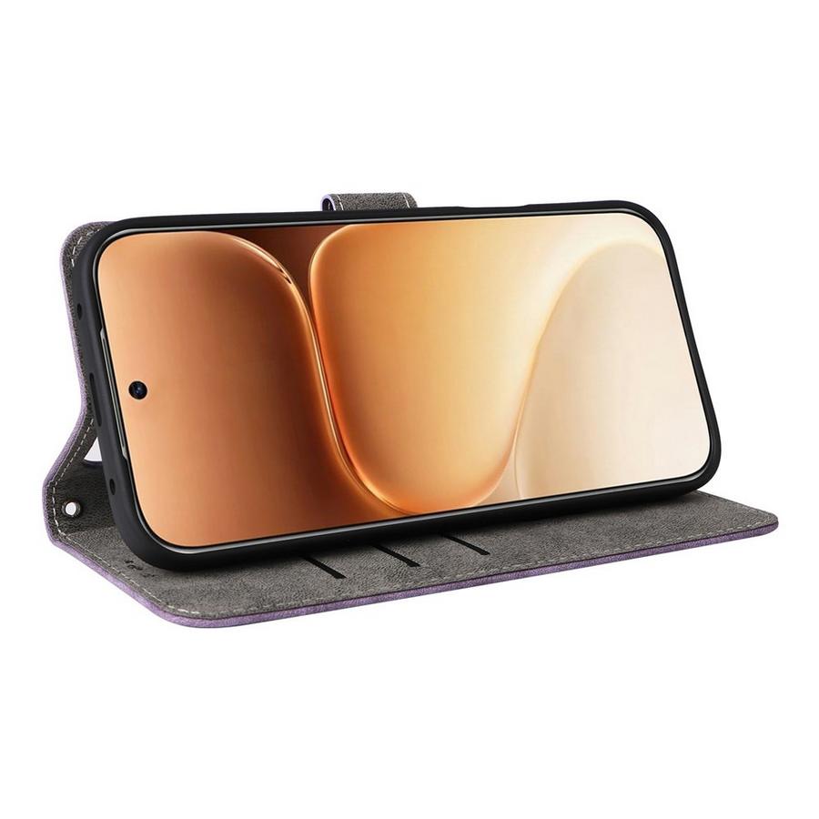 Honor 600 5G / 600 Pro 5G -malleille kauniin violetin värinen lompakkokotelo, jossa sekä puhelin että maksuvälineet ovat suojattuina.