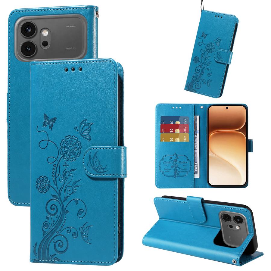 Pirteät turkoosin väriset kannet on kuvioitu suloisilla perhosilla ja kukilla, suojakotelo Honor 600 5G / 600 Pro 5G puhelinten turvaksi.