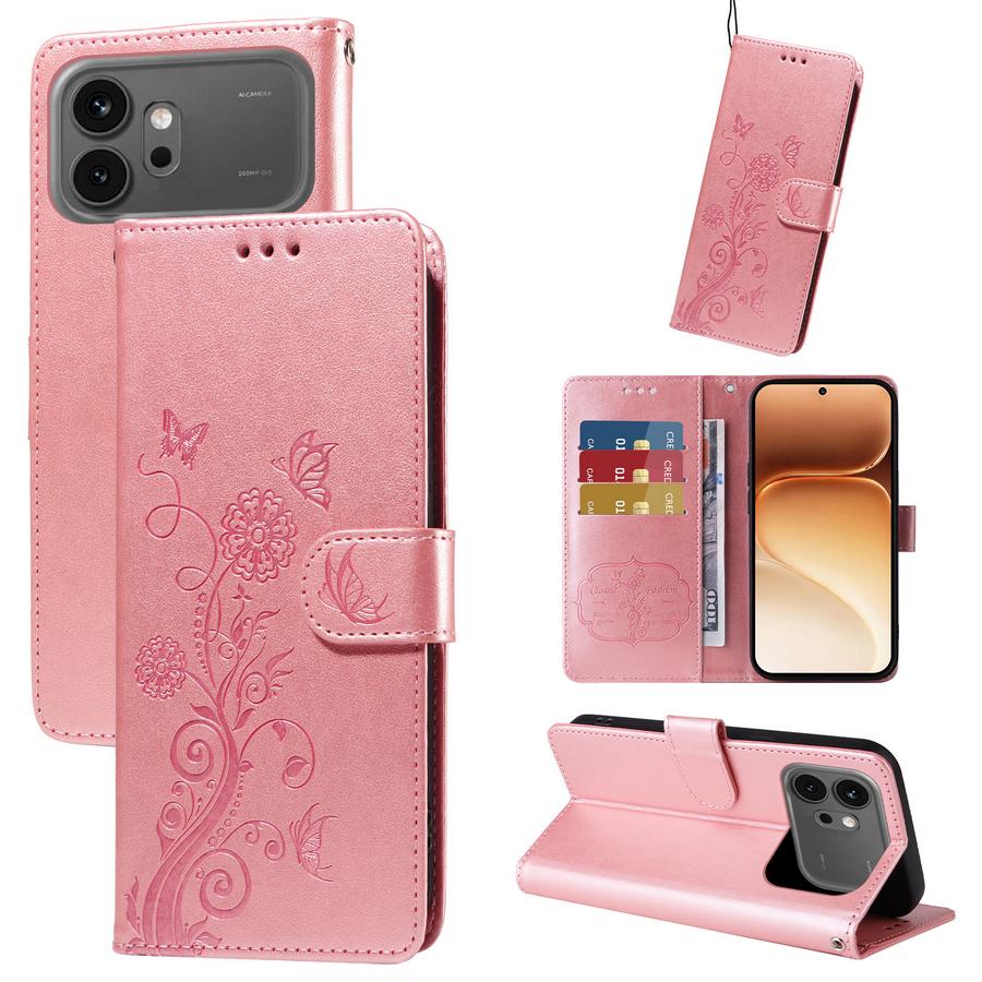 Kukkien ja perhosten kuvioima, soman värinen suojakotelo puhelimesi turvaksi.