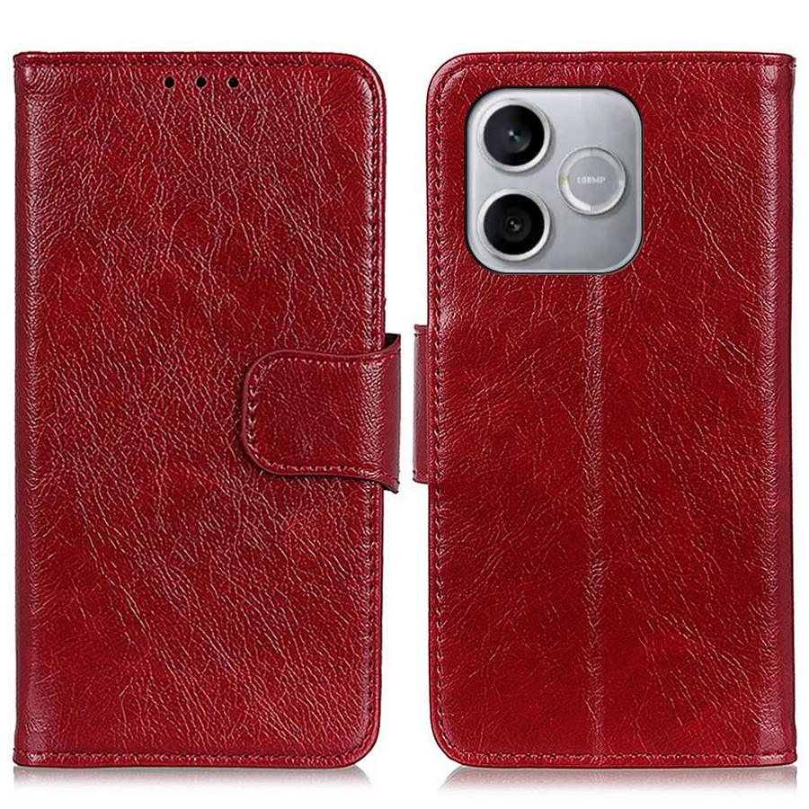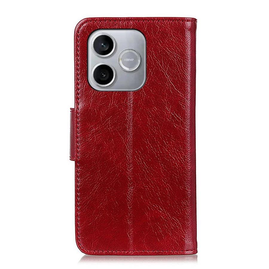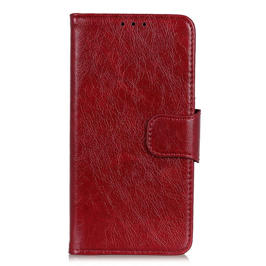 Erinomaisesti vahingoilta suojaava nahkakotelo Honor 600 Lite 5G -puhelimelle, kansissa kiiltäväpintainen viininpunainen väritys.