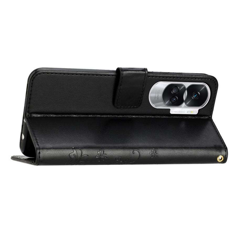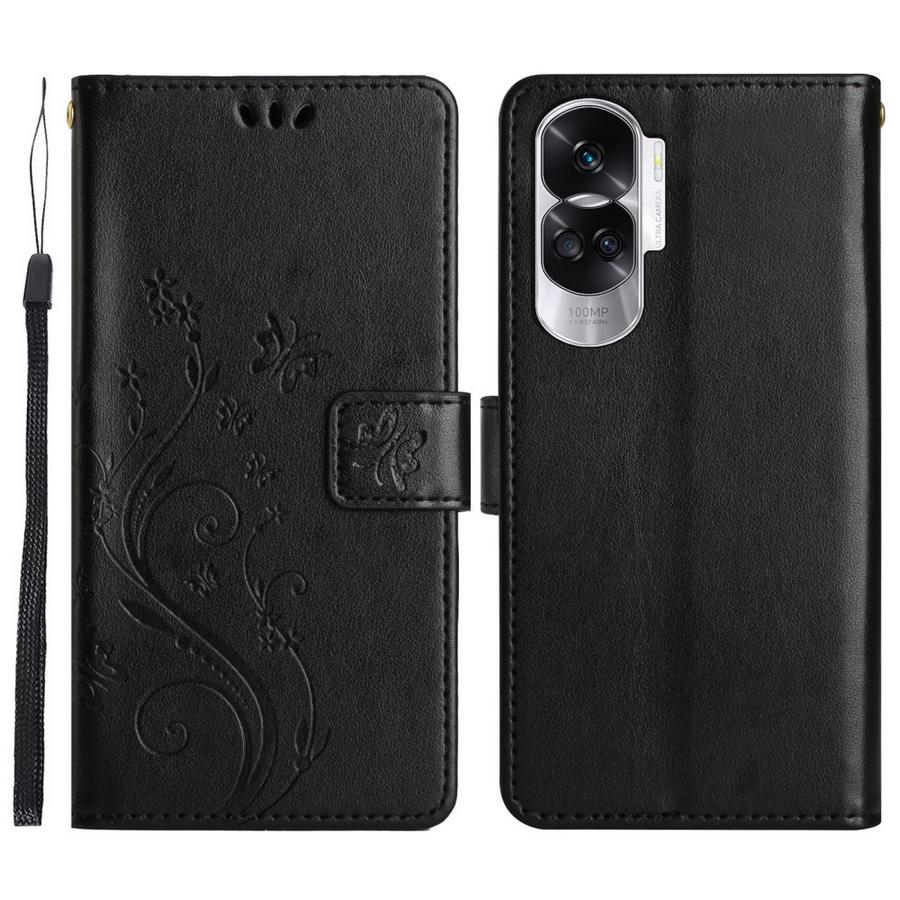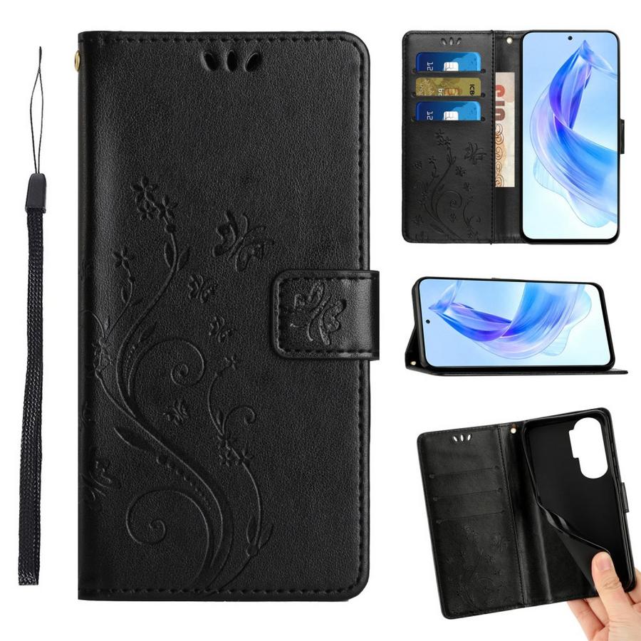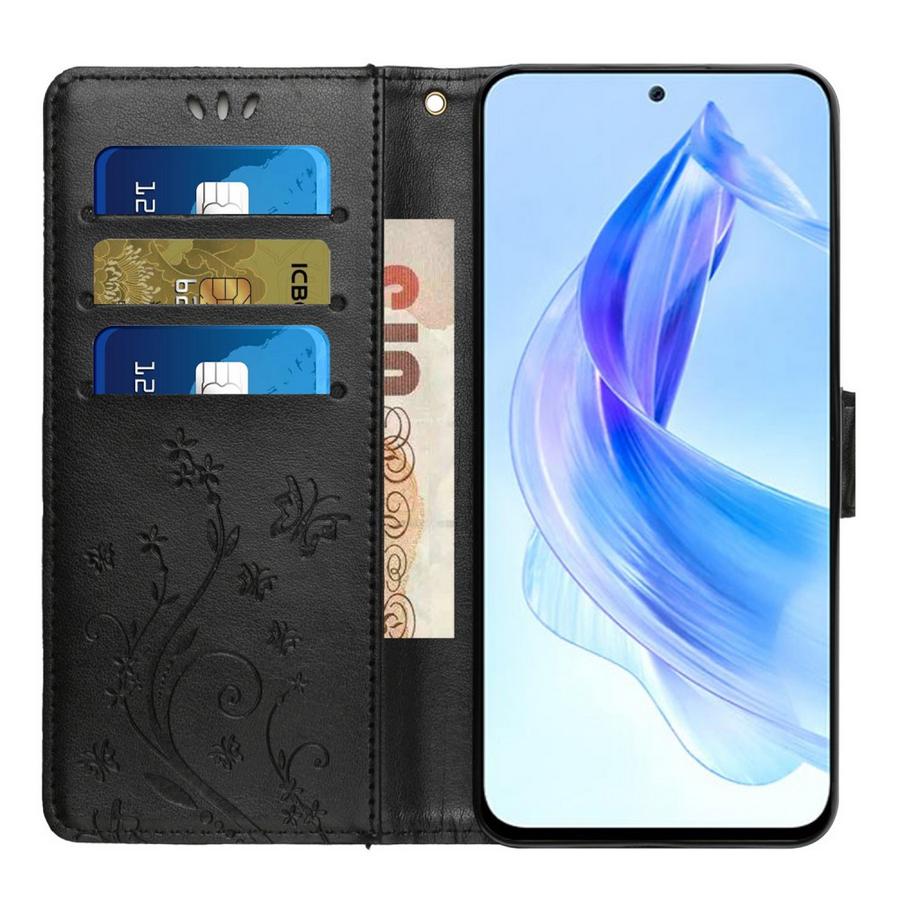 Honor 90 5G Lompakko Suojakotelo Kukka Musta