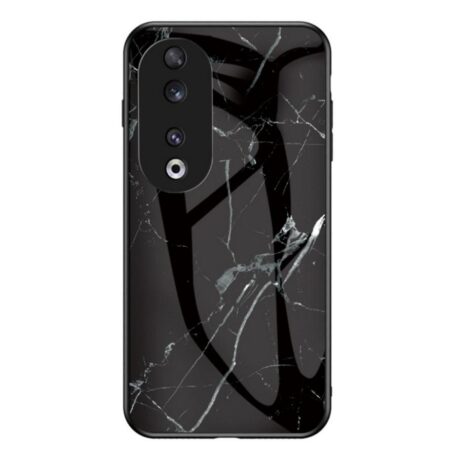 Todella tyylikkään näköinen, tummapintainen ja valkeiden marmorikuvioiden halkoma takakuori Honor 90 5G puhelimen turvaksi.