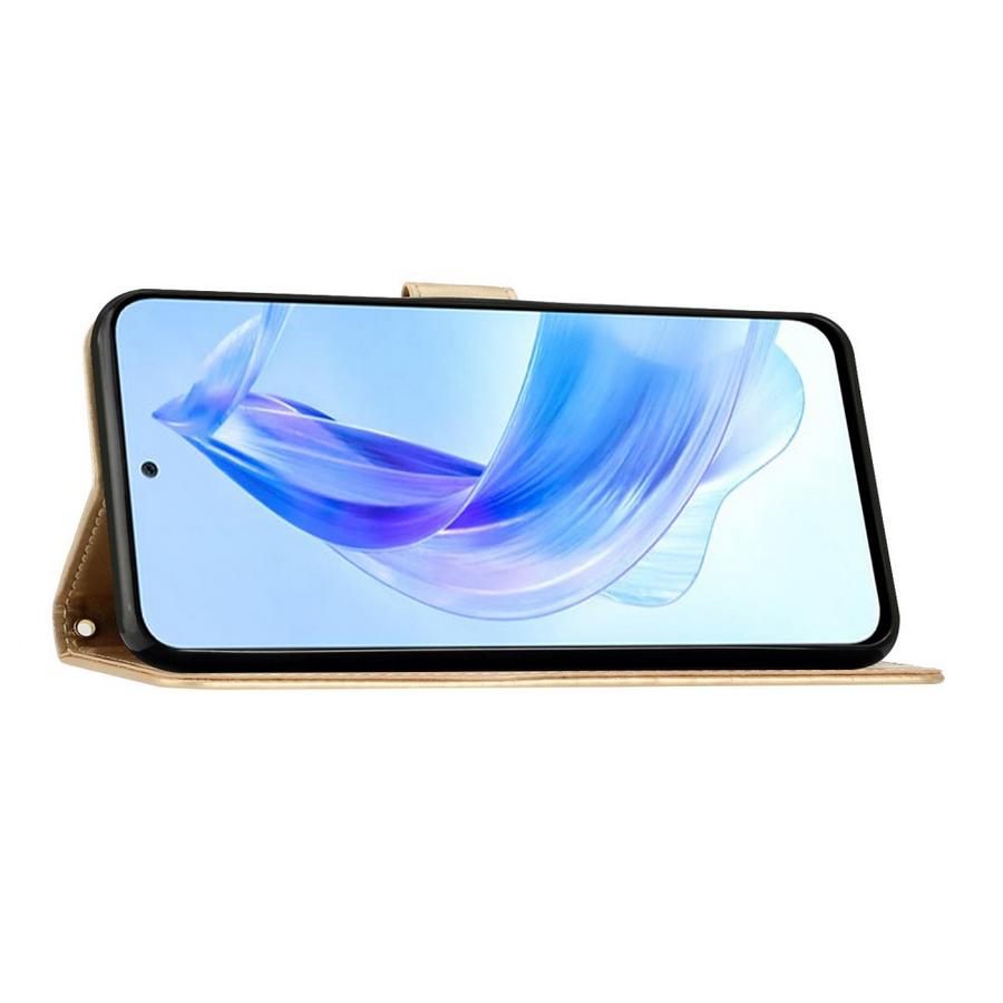 Painokuvioiden somistettu upeasti kullankiiltävä suojakotelo tuo ylellisyyttä Honor 90 Lite 5G älypuhelimen suojaamiseen.