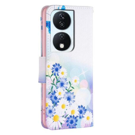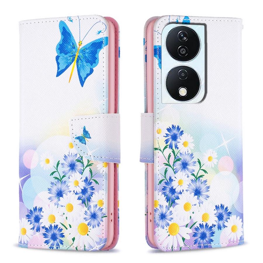 Suloinen, hempein värein kukkien ja perhosten kuvioima kotelomalli rikkoutumisen suojaksi Honor 90 Smart 5G -älypuhelimelle.