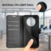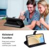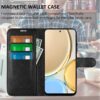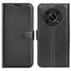 Klassinen mustakantinen lompakkokotelo, jossa Honor Magic4 Lite 5G -älypuhelin tehokkaasti suojattuna vahingoilta ja pintojen naarmuilta.