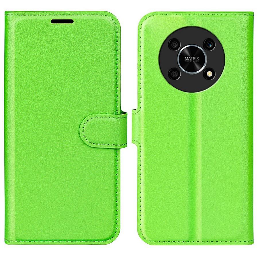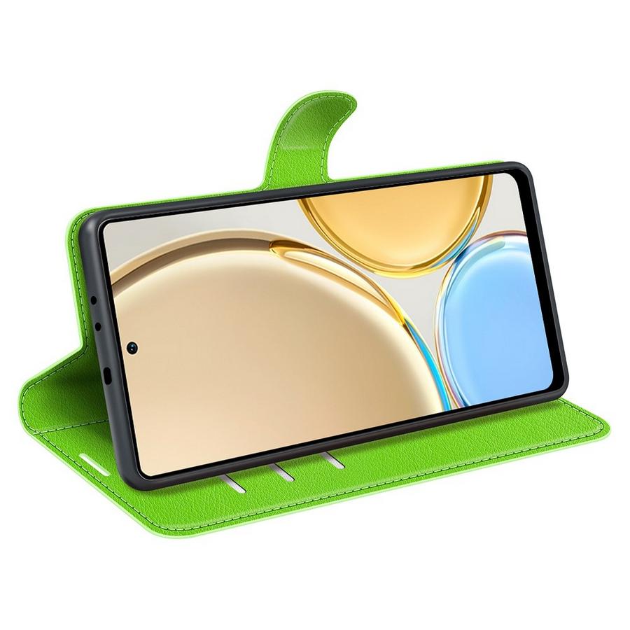Honor Magic4 Lite 5G puhelinmallille iloinen kirkkaan vihreä lompakkokotelo, jossa se säilyy käyttökunnossa ja rikkoutumatta.
