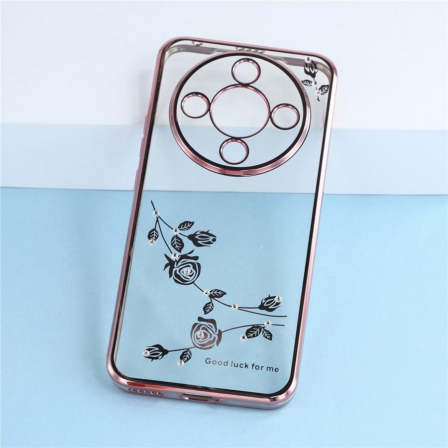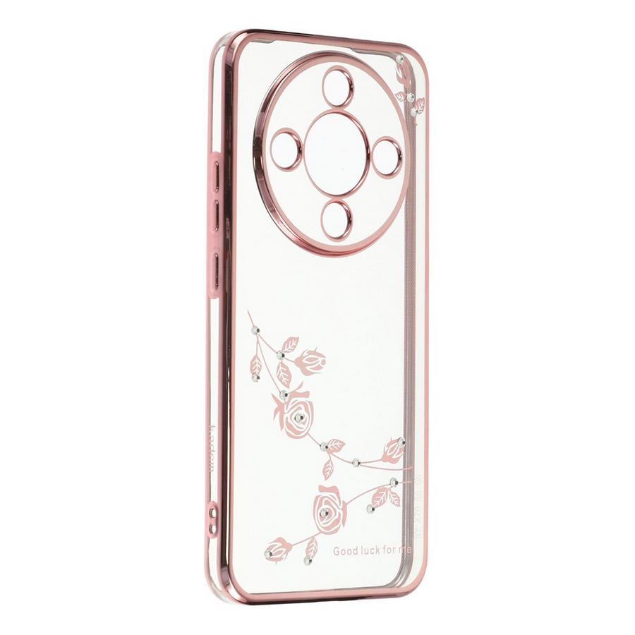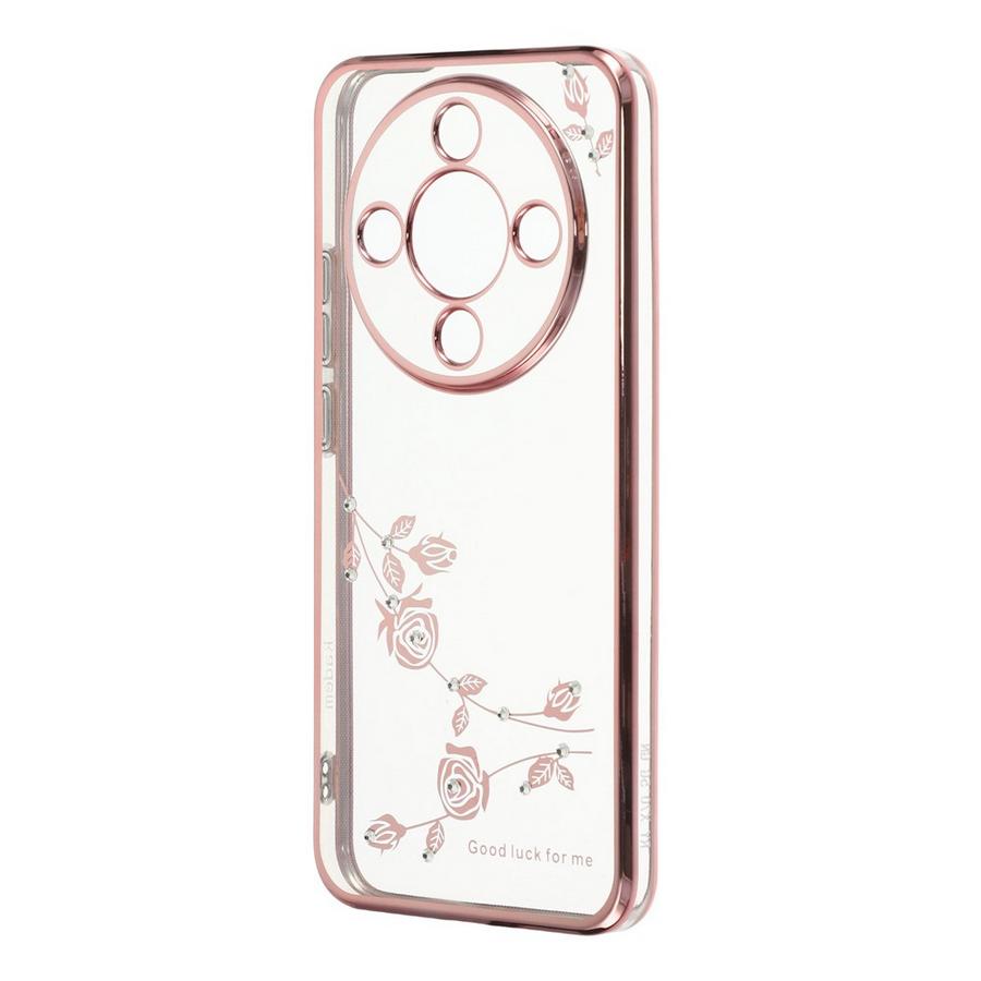 Honor Magic8 Lite 5G älypuhelimen keveä ja elastinen takakuori heleän värisillä ruusukuvioilla ja korukiviä muistuttavilla somisteilla.